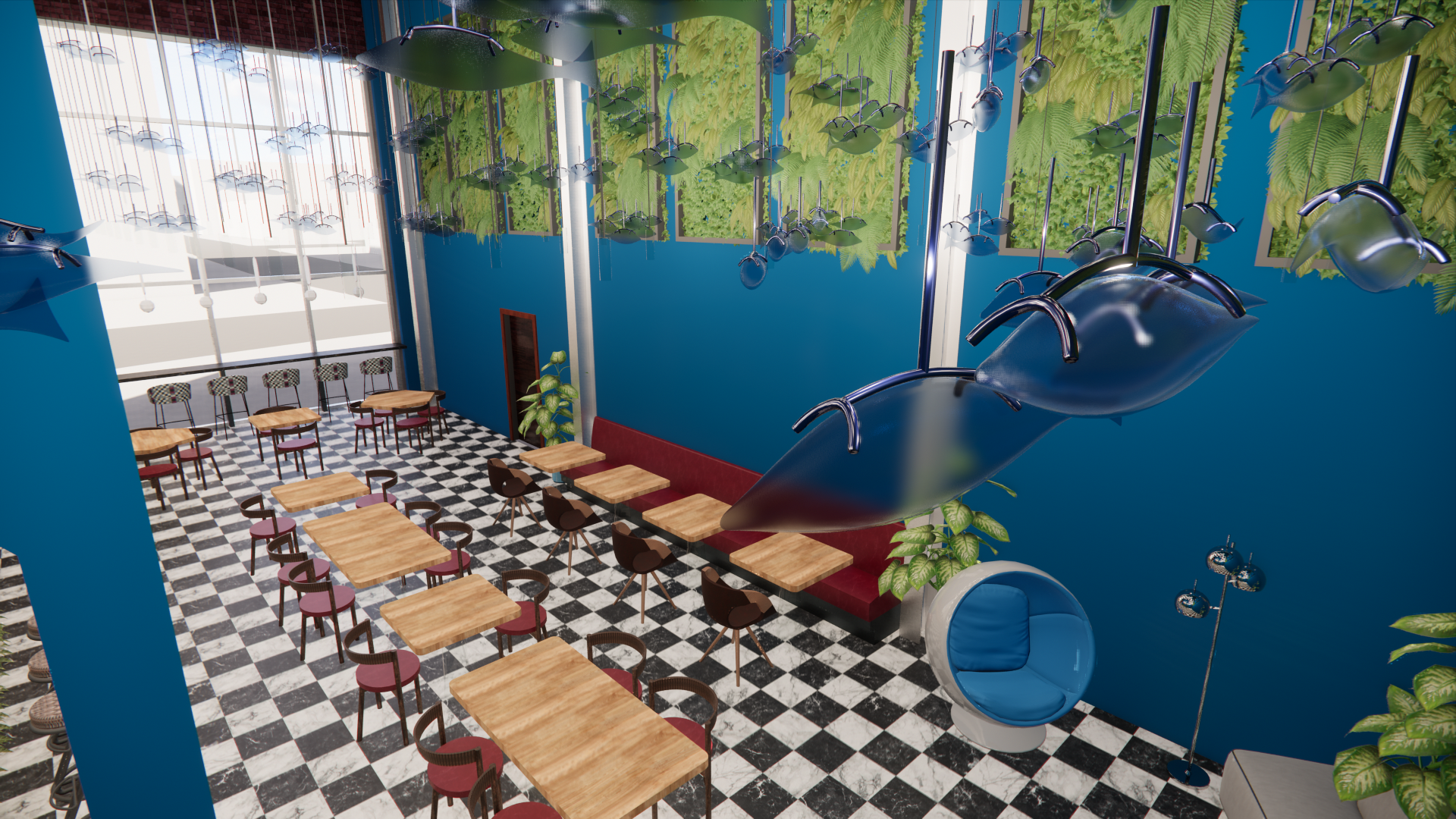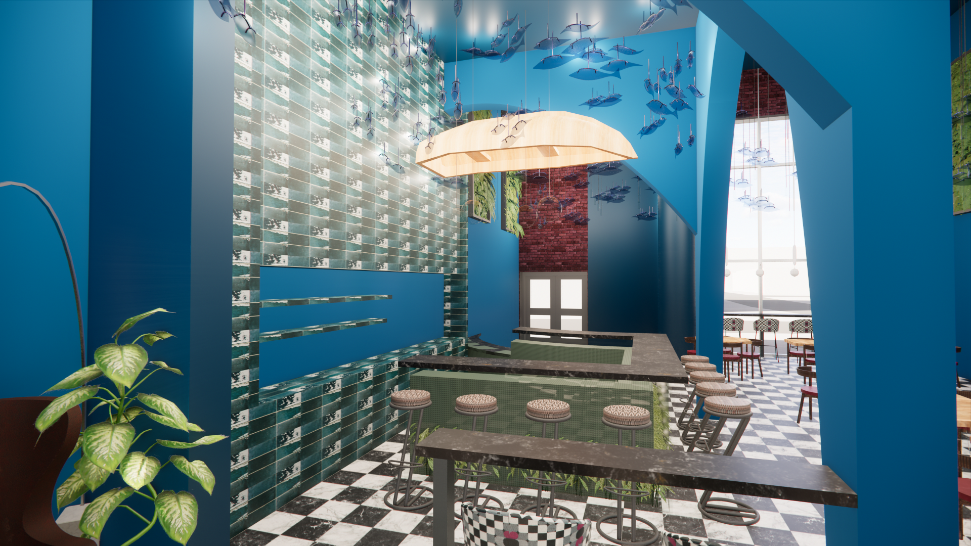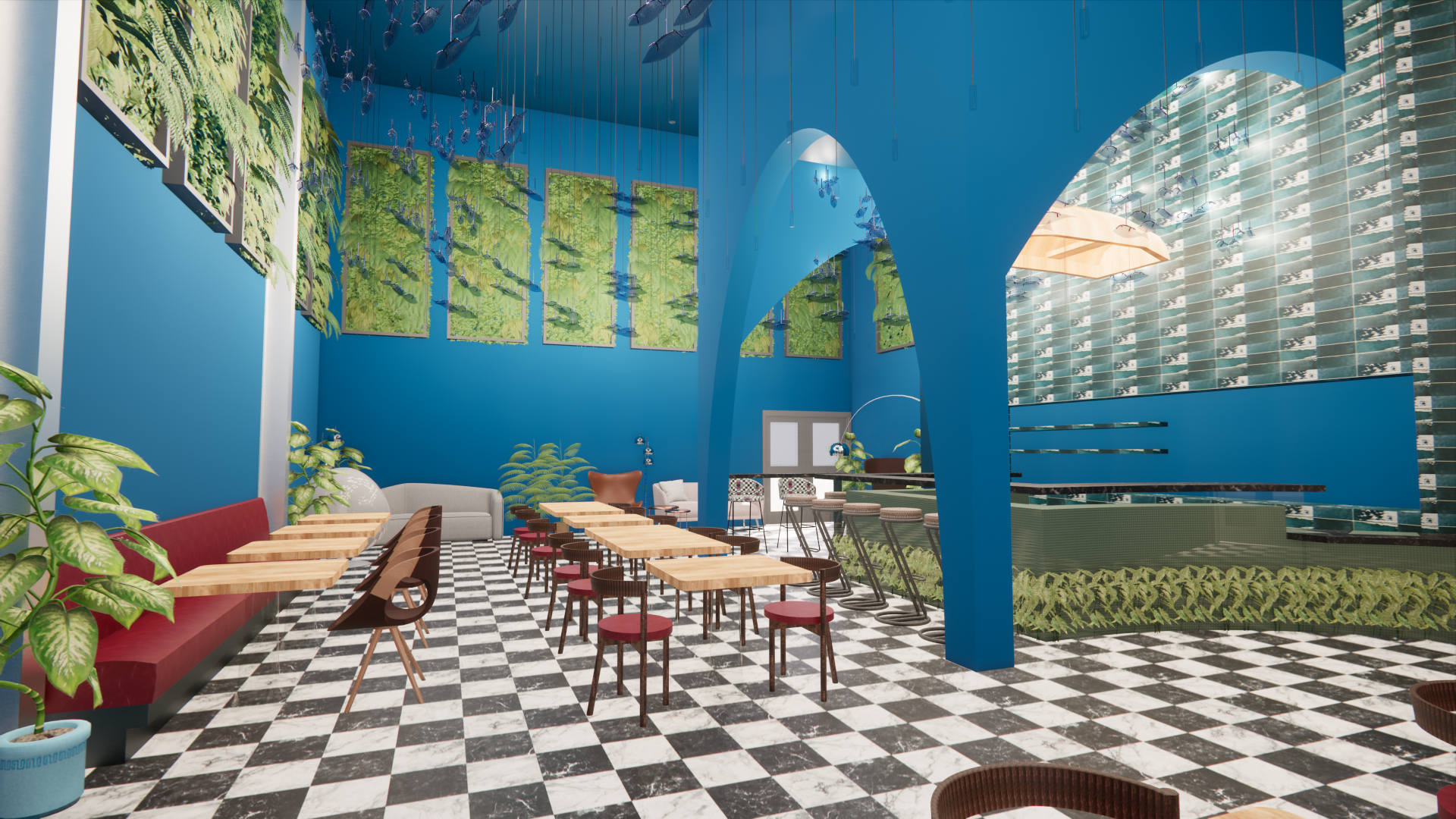 When thinking about urban design, I wanted to bring the coming of nature into the city. The 1980s had many eclectic designs, so I want to use organic shapes and styles from that era as well.